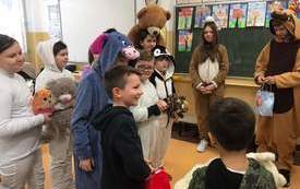 25 listopada obchodzimy Światowy Dzień Pluszowego Misia. Uczniowie z naszej szkoły również pamiętali o tym ważnym święcie. Ósmoklasiści, przebrani za misie, odwiedzali każdą klasę i częstowali słodyczami. Nie zapomnieli także o przedszkolakach. Dzieci z klas l - lll przyniosły do szkoły swoje ukochane pluszaki /niektórzy przebrali się za misie/, a działając w grupach wykonały portrety Misiaków, które teraz są ozdobą korytarza. To był bardzo "pluszowy" dzień.