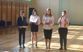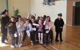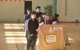 13 października w naszej szkole odbył się z tej okazji uroczysty apel. W kierunku nauczycieli oraz pracowników szkoły popłynęło wiele ciepłych życzeń i słów uznania od dyrekcji, zaproszonych gości oraz przewodniczącej Samorządu Uczniowskiego. Prezentem dla wszystkich świętujących był występ chóru szkolnego oraz solisty- Miłosza Dybowskiego, a także taneczne popisy przedszkolaków i uczniów klas I- III. Starsi uczniowie w zabawny sposób zaprezentowali obraz naszej szkoły. Do wagonów "Ekspresu do wiedzy" wsiadali na kolejnych stacjach nauczyciele poszczególnych przedmiotów oraz pracownicy. Każdy mógł zobaczyć, w jaki sposób jest postrzegany przez uczniów. Śmiechu było co nie miara.
