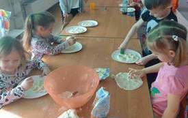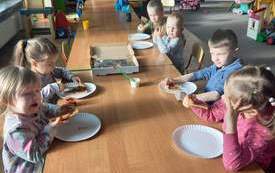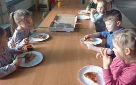 W ramach projektu "Z kulturą mi do twarzy" przedszkolaki i uczniowie klas I-III ze "smakiem" obchodzili ten miły dzień. Poznali zasady zachowania się przy stole, dowiedzieli się skąd się wzięło to pyszne danie, wykonali wiele ciekawych prac. I najważniejsze - wspólnie zasiedli do stołu i skosztowali włoskiego przysmaku.