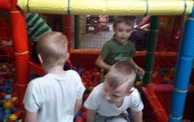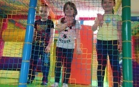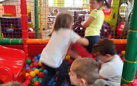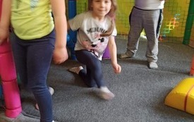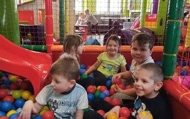 Grupy przedszkolne "Sówki " i" Biedroneczki" postanowiły celebrować nadejście pierwszego dnia wiosny bawiąc się w sali zabaw " Hop Bęc " w Zambrowie. To był szczególnie radosny dzień.