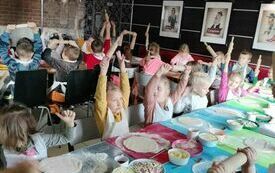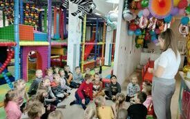 16.11.2023 nasze Słoneczka i Odkrywcy odbyli kolejną wycieczkę, tym razem wyruszyli na Podlasie. W Wysokiem Mazowieckiem czekało na nich mnóstwo atrakcji w sali zabaw "Dziecięca Przystań", pani Magda (właścicielka) była zachwycona naszymi maluchami oraz ich otwartością i chęcią do zabawy Po 2 godzinach harców zmęczone towarzystwo udało się do pizzerii Da Grasso. Dzieci samodzielnie wykonały pizzę, były szczęśliwe, że mogą zdecydować, co się na niej znajdzie. Wszystkie pizze zjedzone zostały z wielkim apetytem. Wycieczkę uważamy za udaną.