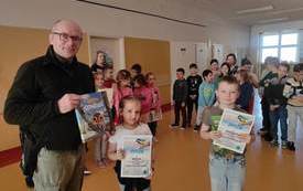 4 stycznia gościliśmy p. Janusza Kura- przedstawiciela Nadbużańskiego Parku Krajobrazowego, który wręczył uczniom klas I-III pamiątkowe nagrody i dyplomy za udział w konkursie plastycznym "Zimowi skrzydlaci mieszkańcy doliny Bugu". Szczególnie gratulujemy uczniom klasy 1- Natalii Kuzak za zdobycie II nagrody oraz Janowi Zawistowskiemu, który otrzymał wyróżnienie.